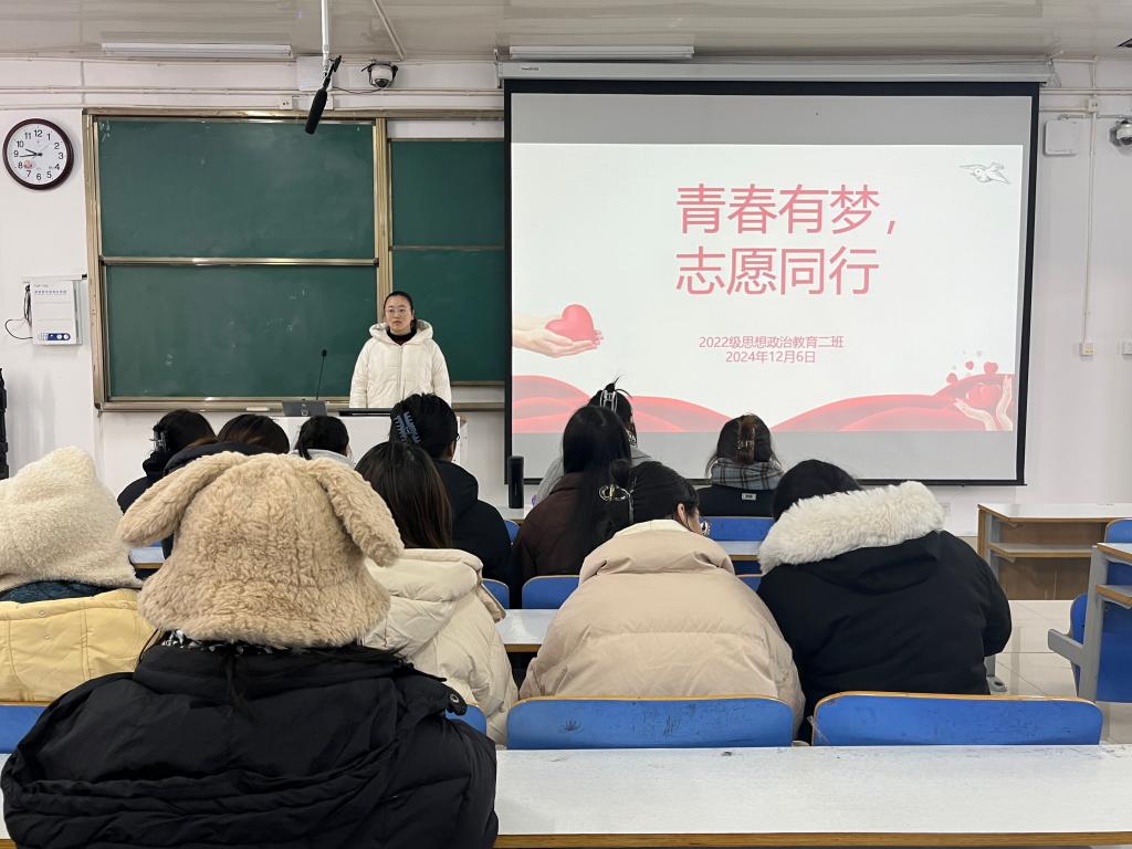 12月6日上午,2022级思想政治教育二班在社科楼514教室召开“青春有梦,志愿同行”主题团课。公司2022级思想政治教育二班全体成员共同参与此次团课。团课由团支书李佳音主持。
