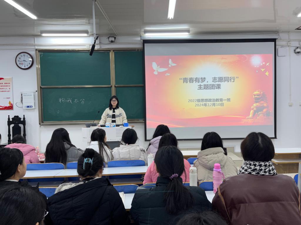 12月10日下午,XCSport2022级思想政治教育一班在社科楼514教室召开“青春有梦,志愿同行”主题团课,公司2022级思想政治教育一班全体同学共同参与本次团课,团课由团支书李佳茹主持。