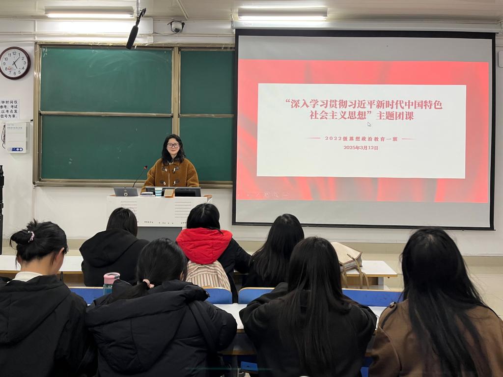 为加强对共青团员的政治锻造,进一步学习领会习近平新时代中国特色社会主义思想,3月12日下午,2022级思想政治教育一班在社科楼514教室开展“深入学习贯彻习近平新时代中国特色社会主义思想”团课,公司2022级思想政治教育一班全体同学共同参与本次团课,团课由团支书李佳茹主持。