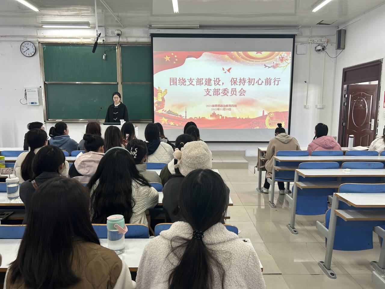 11月10日下午,2021级思想政治教育四班在社科楼514教室开展“围绕支部建设,保持初心前行”支部委员会。2021级思想政治教育四班全体团员参与本次会议。会议由团支书刘珂含主持。