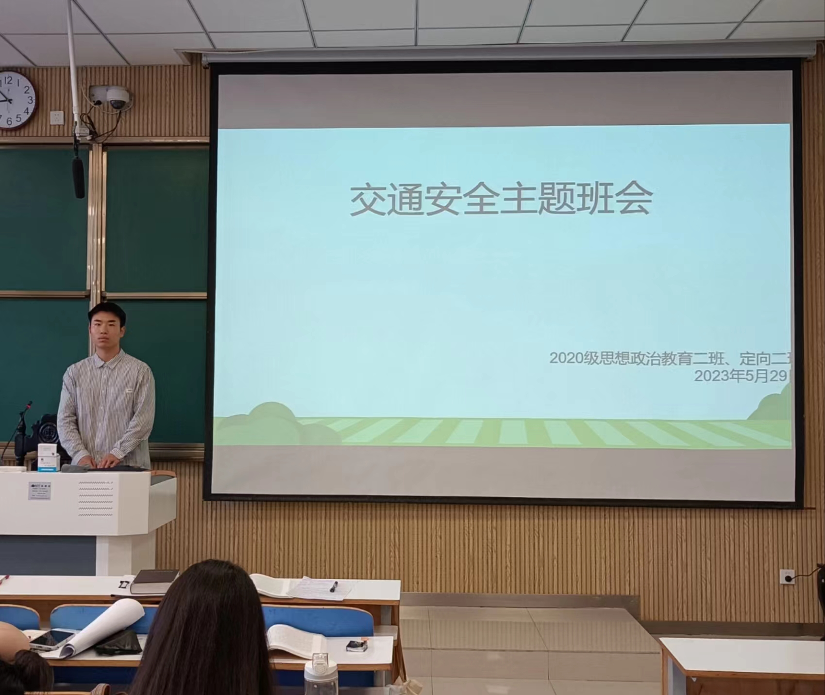 为进一步加强交通安全主题教育,增强同学们的交通安全意识,5月29日下午,2020级思想政治教育二班、定向二班在社科楼514教室召开交通安全主题班会。二班、定向二班全体同学共同参会。会议由班长高红凯主持。