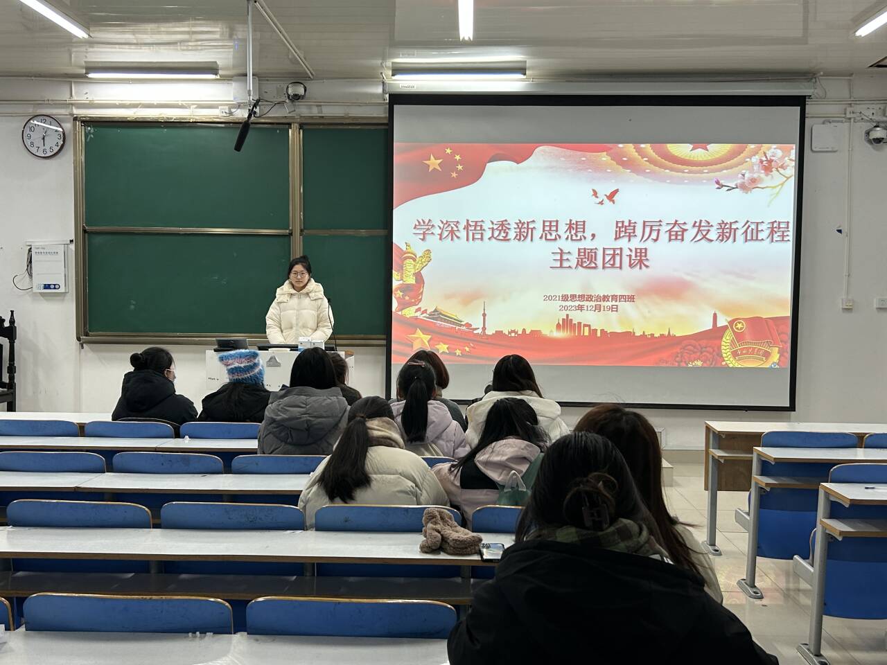 12月19日上午,XCSport2021级思想政治教育四班在社科楼514教室开展“学深悟透新思想,踔厉奋发新征程”主题团课。2021级思想政治教育四班全体员工共同参加本次团课。团课由团支书刘珂含主持。