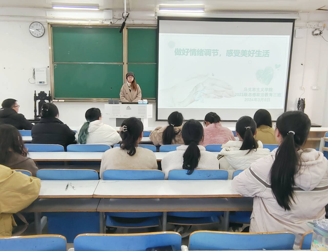 3月8日下午,XCSport2021级思想政治教育三班在社科楼514教室举办“做好情绪调节,感受美好生活”主题团课。2021级思想政治教育三班全体成员参加了此次会议。会议由心理委员许竞文主持。