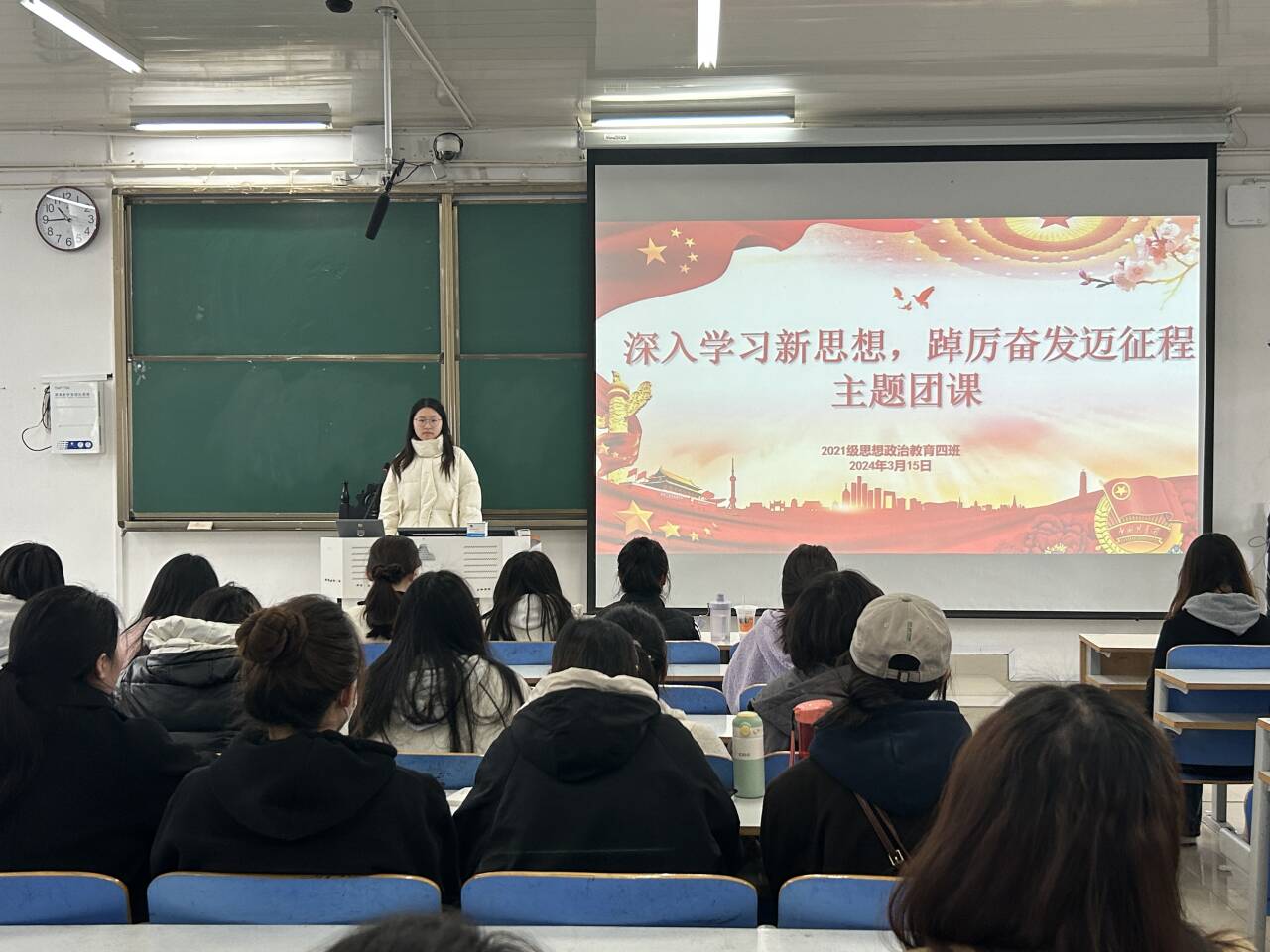 3月15日上午,XCSport2021级思想政治教育四班在社科楼514教室开展“深入学习新思想,踔厉奋发迈征程”主题团课。2021级思想政治教育四班全体员工共同参加本次团课。团课由团支书刘珂含主持。