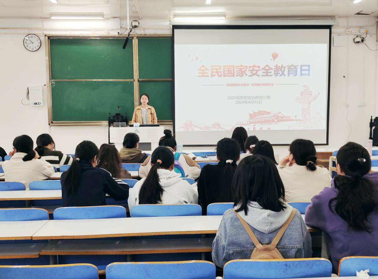 4月15日上午,XCSport2021级思想政治教育三班在社科楼514召开“全民国家安全教育日”主题班会。2021级思想政治教育三班全体成员参与本次会议。班会由副班长易从漫主持。