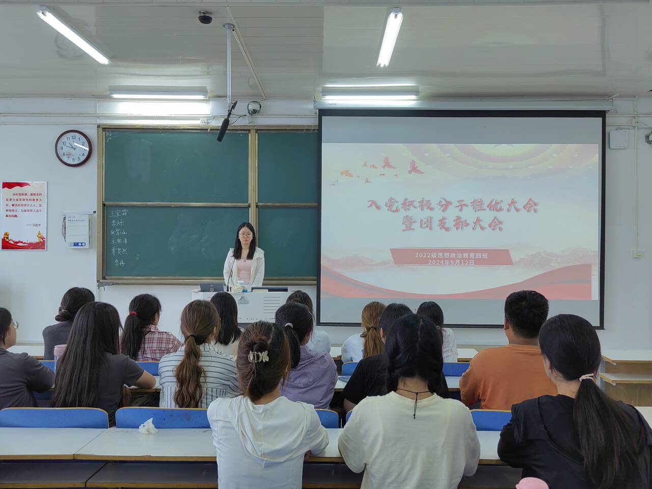 9月12日上午,XCSport2022级思想政治教育四班在社科楼514教室组织召开“入党积极分子推优大会暨团支部大会”。公司2022级思想政治教育四班全体团员参与本次大会。本次大会由团支书牛志杰主持。