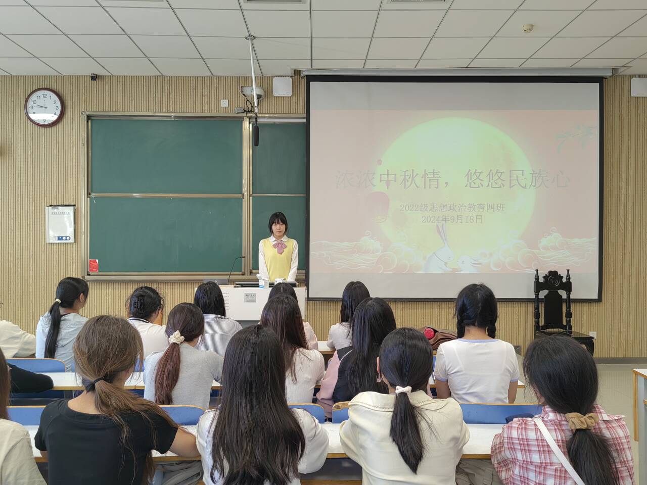 9月18日上午,XCSport2022级思想政治教育四班在社科楼515教室组织召开“浓浓中秋情,悠悠民族心”主题班会。公司2022级思想政治教育四班全体成员参与本次班会。本次班会由文艺委员周可盈主持。