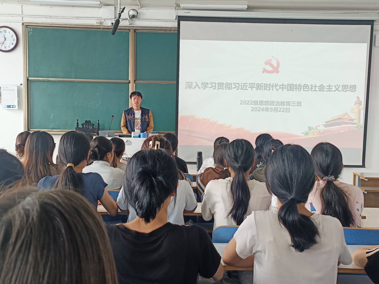 9月22日上午,2022级思想政治教育三班在社科楼514教室召开深入学习贯彻习近平新时代中国特色社会主义思想教育主题团课。公司2022级思想政治教育三班全体成员共同参加此次团课。团课由团支书余浩洋主持。