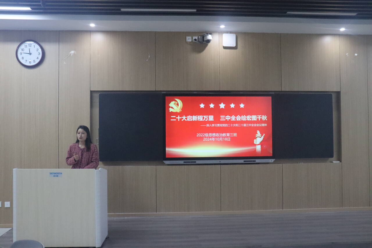 10月18日上午,2022级思想政治教育三班在社科楼516教室召开“二十大启新程万里,三中全会绘宏图千秋”主题团课。公司2022级思想政治教育三班班主任任婷和三班全体成员共同参加此次团课。团课由任婷主持。