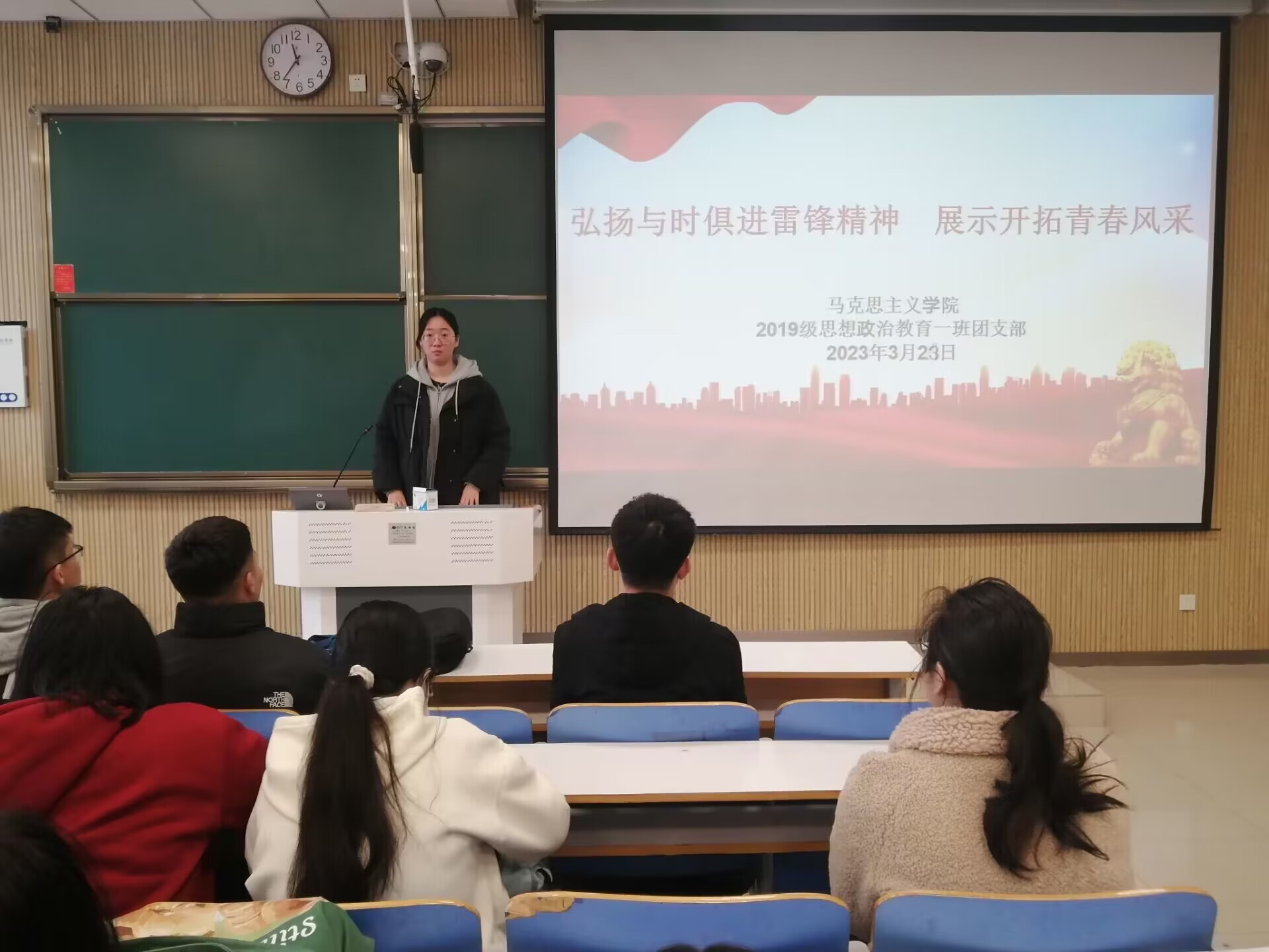 3月23日上午,2019级思想政治教育一班在社科楼515教室开展“弘扬与时俱进雷锋精神 展示开拓青春风采”主题团课。2019级思想政治教育全体成员参加本次会议,会议由班长贾子漪主持。