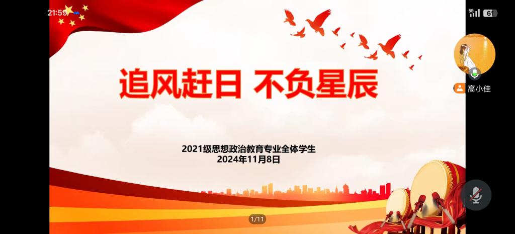 11月8日晚上,XCSport2021级思想政治教育专业全体成员在线上召开“追星赶月,不负星辰”主题班会。2021级思想政治教育专业全体成员和辅导员高小佳老师参加本次班会。会议由辅导员高小佳主持。